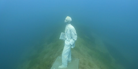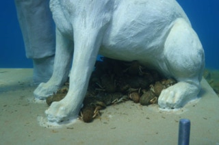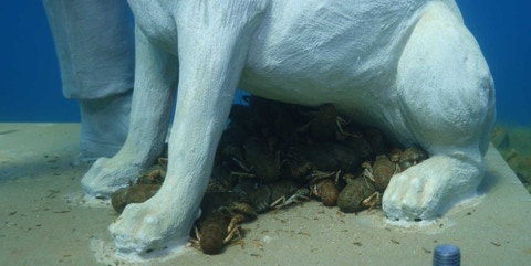 Süßwasserschwämme und Krebse mit den Beton-Menschen eingehen.