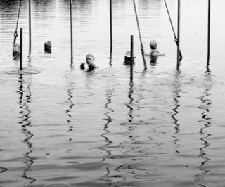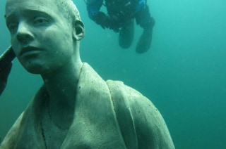 Süßwasserschwämme und Krebse mit den Beton-Menschen eingehen.
